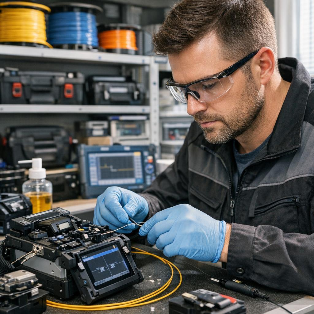 Qualitätssicherung: Durch spezielle Reinigungs- und Spleißgeräte wird die Zuverlässigkeit der Glasfaserverbindungen erhöht.